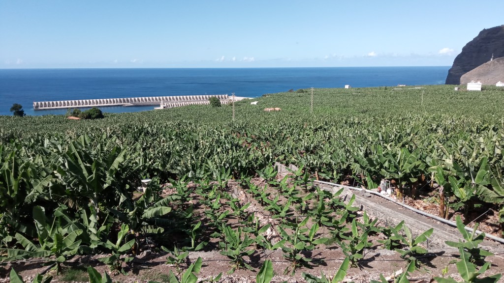 I am apparently very lucky to have been given a berth as I’m told others have not, and have had to stay out on the anchorage till something becomes vacant. That would not have been an option for me as for two days from when I arrived, the wind continued to come from west and become gale force, directly onshore with no protection from the harbour wall. We also had torrential downpours which are very unusual on the west side of the island. The mountains and ravines are incredibly steep so the water just runs straight off and within a very short time the dry river beds become raging torrents. It’s then that one understands how this apparently hard volcanic rock has been so deeply eroded. I have decided to stay a month here. People said Tazacorte is a place where people visit and often never leave. At first I couldn’t see the attraction. The marina itself is surrounded by banana plantations, is separated from the capital, Santa Cruz de la Palma, by a massive mountain range, and the nearest shops are a mile away and a good couple of hundred meters up hill. But the marina has a very friendly feel and is well run with all the facilities that make life easy. It’s quiet (no ferries, at least not yet), very secure (even with a F8 piling into the sea wall there was absolutely no swell finding its way to where I’m berthed), and there are many semi liveaboards, who come back here time and again. There is a bus every hour up the hill to town and indeed beyond to Los Llanos which used to be the capital in olden times. And the clincher was that there is a newly opened Lidl there !! What more could you want. A beach perhaps? well it’s got one of those too, so long as you don’t mind taking your kit off as it’s a designated nudist beach. I won’t be posting much again until I leave as I don’t plan on sailing, there isn’t really anywhere to go for the day from here. The big activity is hiking the many trails in the mountains. I’ve already tackled a couple and have been invited to join an unofficial band of walkers from other boats, so it’s time to conquer the vertigo !