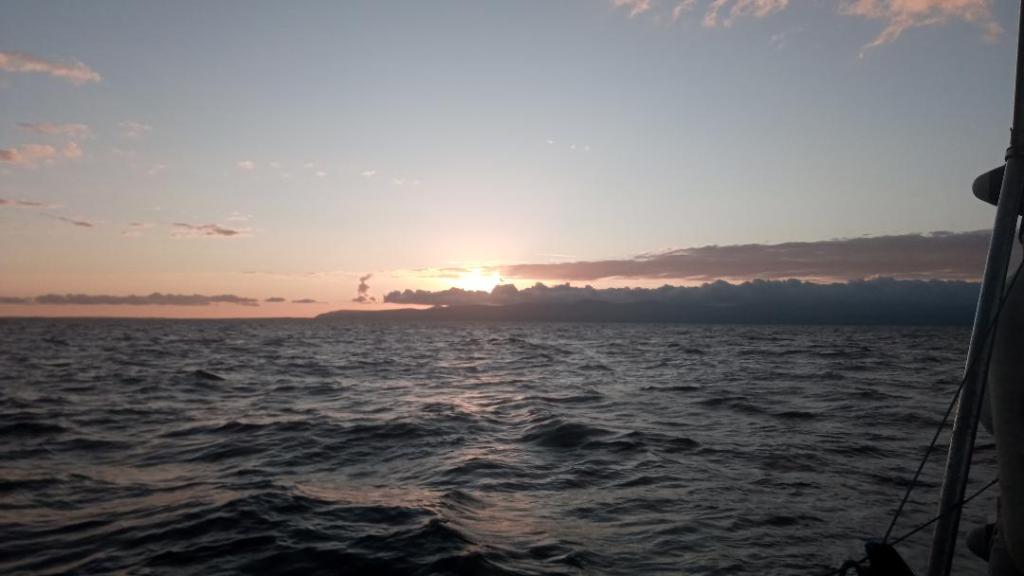 Thursday, I depart Peel at first light in order to have a chance of reaching Glenarm by early evening, before dark and the tide turning. Forecast is a F4 from SE and soon after leaving harbour I pick up the breeze on a dead run. Once clear of Isle of Man the sea starts to build as the tide turns against us, however with the wind a F5 I’m able to maintain good speed. By late morning I’m half way across the north channel and with a big following sea I’m surfing down waves. The autohelm can’t cope with the sea so I hand steer. The boat seems to have a mind of its own on what direction to take as each steep wave comes from a different quarter, picks up the stern and rolls under the boat twisting it this way and that. The bow swings violently up to 30 degrees either side of the heading and presents a high risk of broaching or gybing. With concentration and applying just a little helm in the right direction and at just the right time, a reasonably steady course can be held, but every so often I lose it as a particularly big set of waves roll in. A mayday comes over the VHF, a yacht is on the rocks outside Ardlass, south of me and upwind, so not much I can do to help, and then I hear the lifeboat is on scene. By early afternoon my concentration is waning but I’ve crossed the Channel, and the tide turns in my favour so the sea settles considerably. Wind continues to rise to 22kts plus and I cross the entrance of Belfast lough doing a steady 8kts. My eta is 17.30 so well ahead of schedule. As I approach Muck island, close to Larne, the Belfast coastguard call me up. They task me to look out for a small open dinghy that has been reported as drifting somewhere ahead of me (they can see my position on AIS so know I’m the closest boat to the scene). I head inshore scanning around with the binoculars and spot the boat dragged onto a narrow strip of beach below high cliffs. I report the position back to the Coastguard who say the lifeboat has now been tasked and I can stand down, so I continue on my way. It’s a good 20 minutes though before I see the lifeboat come out of Larne, in fact both the big all weather one and the inshore inflatable. An hour later I arrive at Glenarm, one of my two most favourite harbours in NI, the other being Rathlin. But when I rang earlier in the day to request a berth, I was told they were closed from tomorrow for maintenance. They are removing the gangway and turning off power and water, but as I can dinghy ashore to the slip, and won’t need power or water, he has permitted me to stay. Thank goodness as the next two days are forecasting very strong winds, anchoring in the bay would not have been at all pleasant or even safe.
