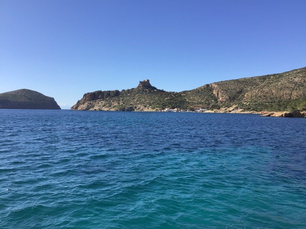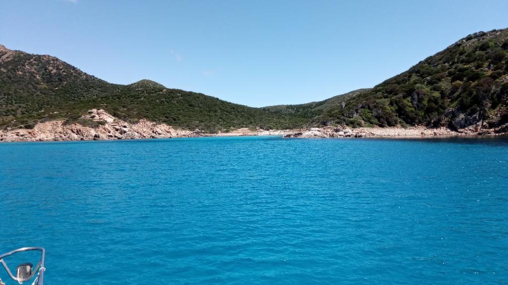 Hello from sunny Sardinia, Malfatano bay to be precise, on the southern tip. I arrived yesterday evening after 52 hours on passage. It started and ended well but the middle bit not so good. I had left Hammamet at 1700 hrs in a brisk 20+ kts offshore breeze on the beam, so heavily reefed we sped up the coast. This moderated to a F4 at sundown and we came round onto a beat. By dawn we were 6nm off Kelibia and tacked for the end of the Cap Bon peninsular. I sailed close inshore to get a lift and was called twice by the navy asking if there was a problem. I assured them not, I think they were concerned I might be picking up migrants from the beach. As we rounded the headland the wind died and it didn’t return, to any useful extent, for another 24 hours ! Sunday was mostly occupied dodging ships passing through the gap between Tunisia and Sicily. It’s a very busy route with a vessel passing one way or the other about every 15 minutes. I had to cross them at an oblique angle (it’s not a TSS) but luckily, of the more than 20 vessels that I crossed, only the last one forced a significant change of course for me. By dark I was clear but still no wind and the forecast promised thundery showers through the night. As it turned out I didn’t catch any but there was plenty of lightening around. Monday morning the sky and sea were 50 shades of grey. It drizzled most of the day but no matter a F3/4/wind arrived at last and we had a steady broad reach for the final 60nm. A couple of dolphins passed by and a few gulls came over for a look, taking a break from their scavenging around nearby fishing boats. The Tunisian flag came down to be replaced by the Italian flag, but no Q flag as I don’t want to attract attention from a passing coastguard boat. I anchored in 5m on pure sand on the east side of the bay, just as the sun set, and ready for a good night’s sleep.