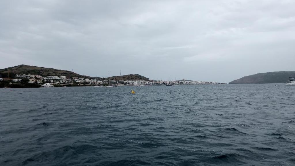 On Monday I had a fine sail around the western end of Menorca to Cala Son Saura. Dissapointingly though, there was much swell into the bay, making SO roll unbearably. The forecast looked good for a following wind that night, all the way to Illa de Cabrera off the SE corner of Majorca. It is a National Marine Park and has one of the best anchorages in the Balearics, although you actually have to pick up a mooring buoy. This has to be reserved in advance online, along with a sailing permit. So at 23.00 hrs I set off south west and soon picked up a fine breeze. However the forecast had omitted to say there would be a risk of thunderstorms. During the night I received a pasteing by three in all, the last one at dawn was one of the worst I have ever experienced. Driving hailstones in 25kts pounded us for 15 minutes, preceded by fork lightening all around, and followed by no less than a water spout which passed about half a mile away. I had put the iPad and phone inside a baking tin inside the oven (a sort of faraday cage so they say) as was sure I was going to receive a strike. As it turned out though no damage was done, just a lot of water down the companionway and waterproofs that proved to be hopeless against the onslaughts.