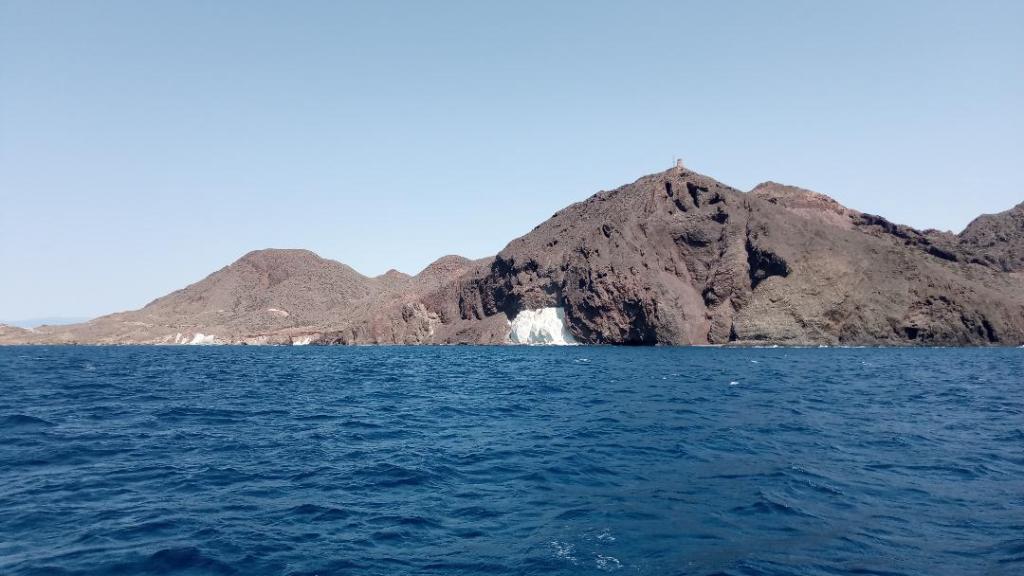 Thursday – the remaining 250nm to Gibraltar are going to be the hardest as it involves coastal sailing so overnight passages are not an option, winds are very fickle, and sheltered anchorages are few. I left Mar Menor on a nice beam reach and rounded Cabo de Palos. Continuing in a SW direction and passing a few miles off Cartegena, an ominous thunderstorm was arising in the mountains. This time I could see my name was on it, there was going to be no avoiding the inevitable, and so usual precautions were taken. It pelted down for ages and had a long tail continuing steady rain for a couple of hours. Winds remained light and then while watching the wind instrument, it suddenly went blank, most likely water had got into the data cable somewhere. After checking the obvious places such as the deck plug, which was fine, I concluded it must be at the top of the mast at the transducer. That would have to wait till I get to Gib to be seen to. I diverted to the nearest anchorage, Cala salitrona, surrounded by tall steep slopes.