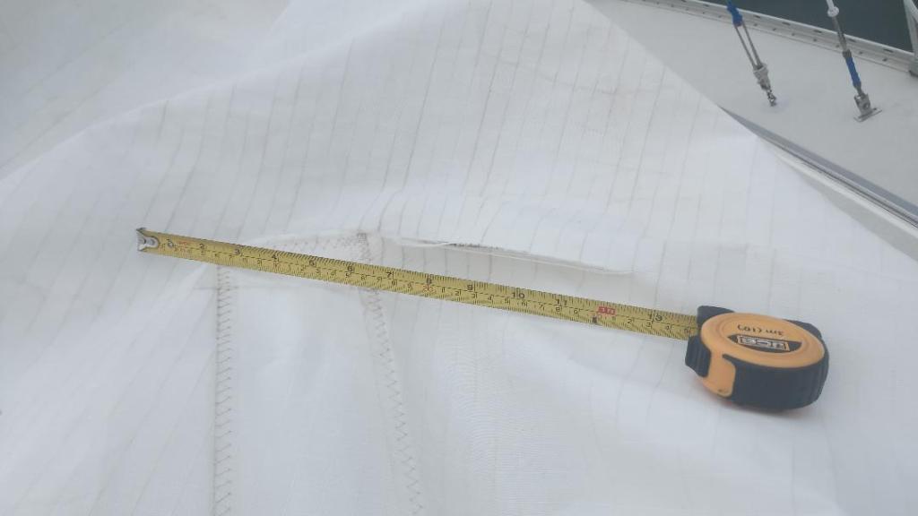 Sunday . Headed back down the channel to the entrance of the estuary and cleared the bar just after HW. Set course for Culatra Island near Faro, an enormous lagoon lies behind this island and a collection of others. It’s promising a nice F4 on the beam for much of the day so expect to arrive at the entrance a couple of hours before HW. It’s only possible to get in with the flood, slack water lasts a very short time. I see no ships or fishing boats at all in this region, but after crossing into Portuguese waters there are fields of pots that I weave my way through. After a fast sail in a wind which reached F5 much of the time, mid afternoon it vanished and I motored the last 8 nm, past a couple of fish farms, and into the entrance channel. Here the flood was in full swing, about 4kts, so swiftly carried us around to an anchorage just beyond the village. In the distance, across a few miles of mud flats and shallow channels, are the towns of Faro and Olhao. It’s very peaceful, at least once the fishermen, in their traditional long narrow open boats with powerful outboards, have gone home. The bad news though is I have an 12 inch tear in the mainsail ! There is no obvious reason for it as it’s almost in the centre and not a place of high stress. So I’m concerned it’s due to the cloth having significantly weakened with UV over the last 6 years, in which case a repair may not last long.