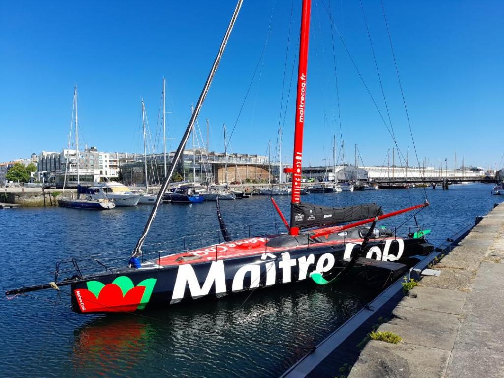 Today I had a cunning plan to tackle the same journey, with the exact same forecast. I went west about the island, sailing one stbd tack NW first then one port tack N when the wind backed, and by leaving at 05.30 I caught 7 hours of favourable tide. It worked a treat, arriving at Les Sables at 13.30 just as wind and sea were rising. Les Sables is the pre-eminent sailing venue of France, where many round the world races start and finish, such as the Vendee Globe. There are a few of those boats here, like in the photo below although that particular one was in La Rochelle.